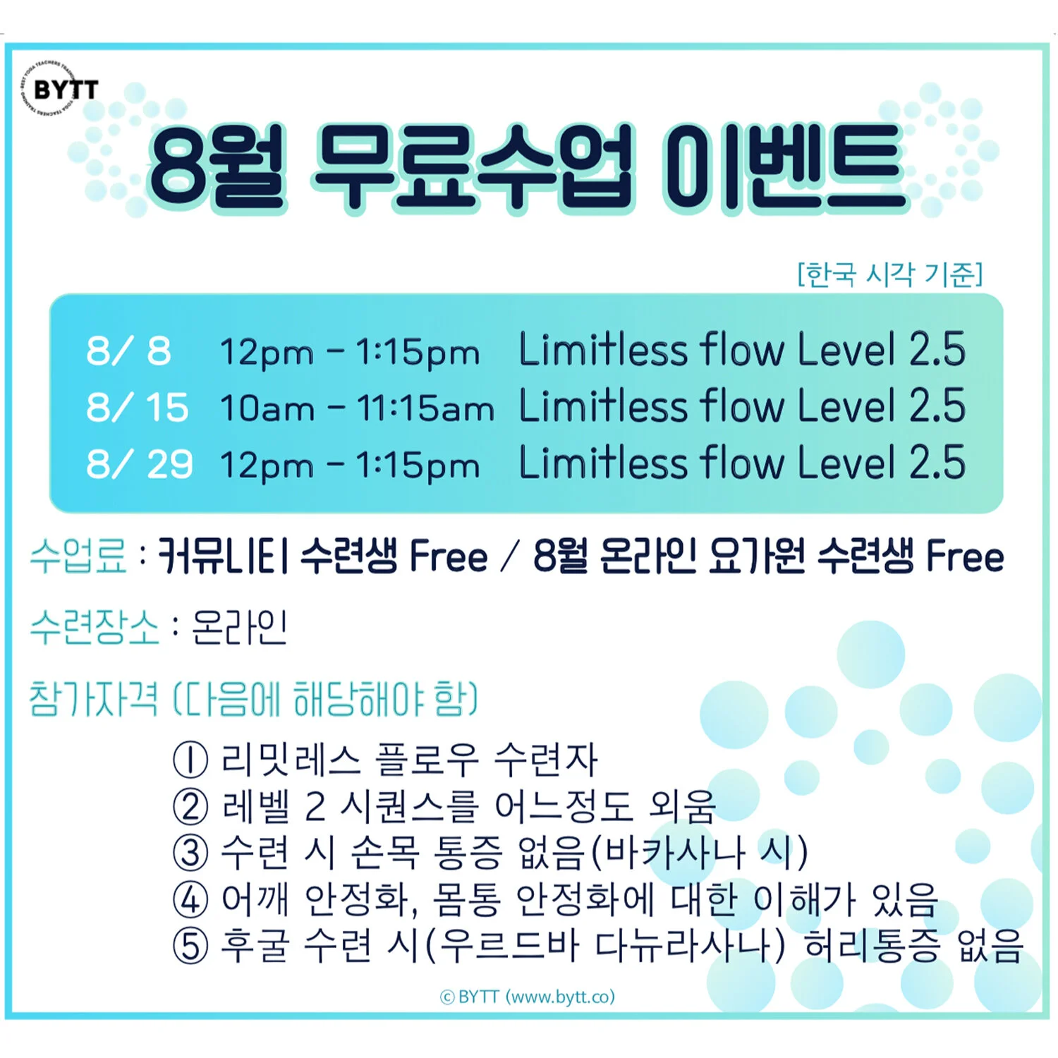 8월엔 리밋레스 플로우 레벨 2.5가 이벤트 수업으로 준비 되어 있습니다.