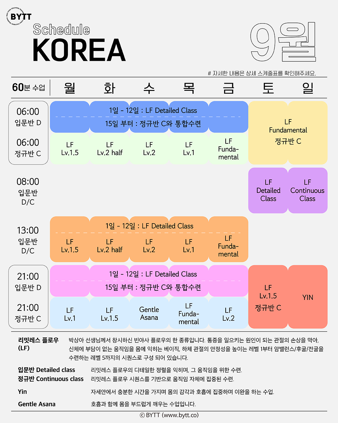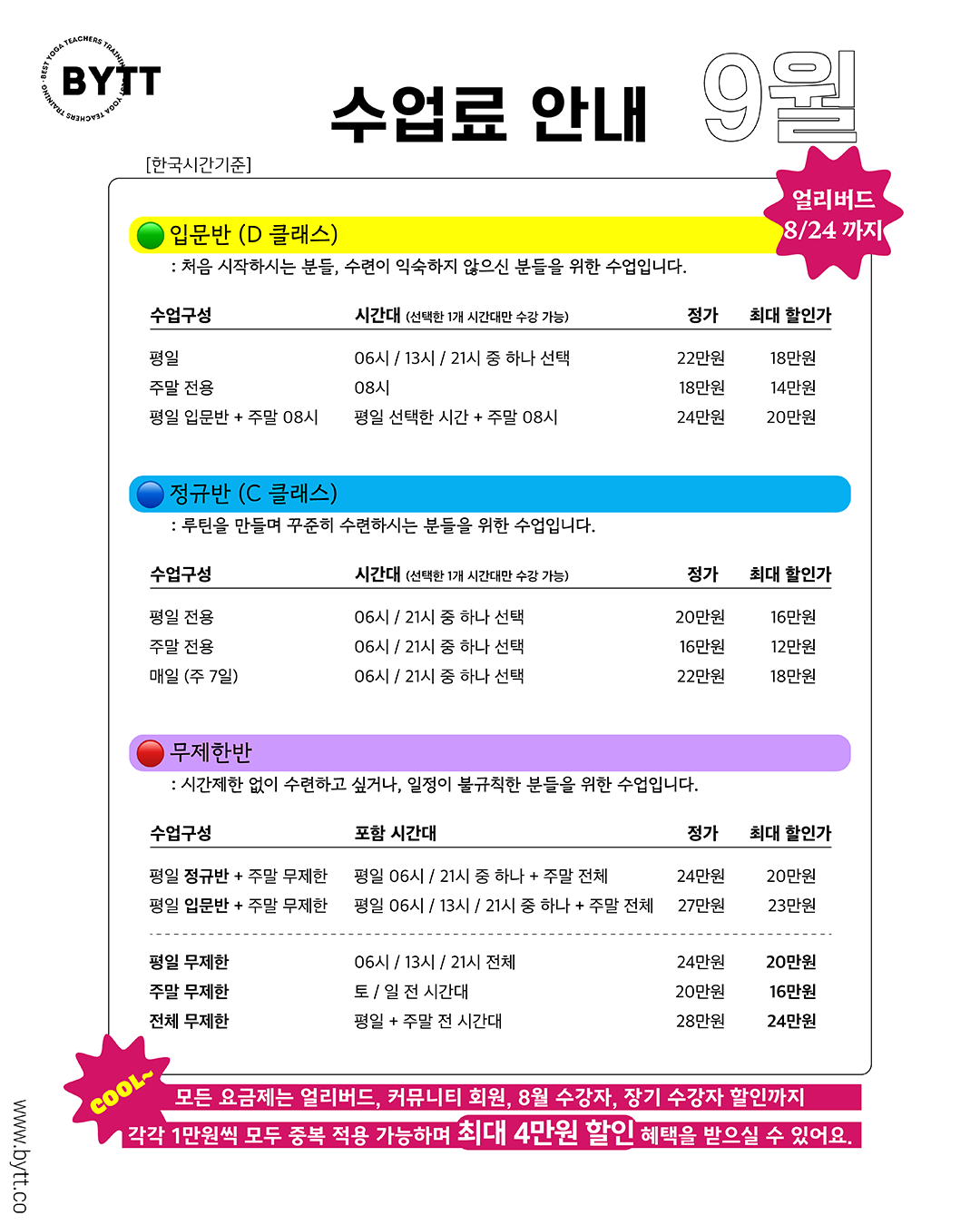 BYTT 온라인 요가원 9월 정규 클래스 모집이 시작됩니다!